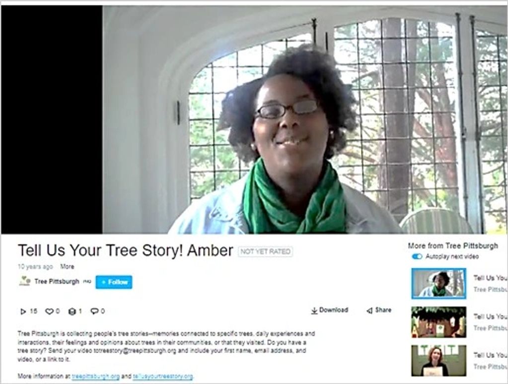 Figure 10. Example of how to share community stories with trees with a wider audience. Tree Pittsburgh recorded and posted community members' tree stories on their YouTube channel.