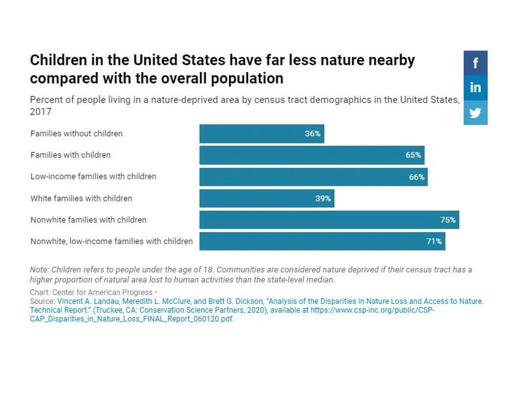 Figure 13. Percent of people living in nature-deprived areas, based on presence of children in the family.