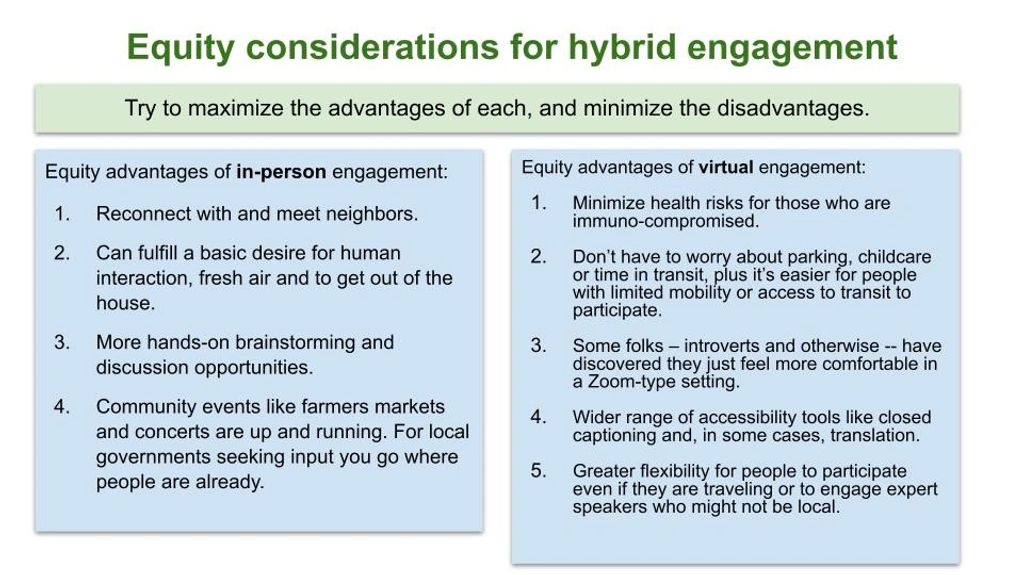 Figure 7. Equity advantages of in-person and virtual methods of community engagement.