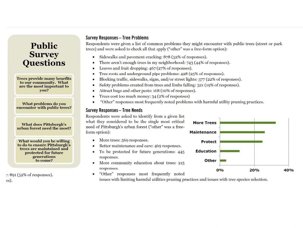 Figure 8. Example public survey questions to understand community members' perspectives on tree benefits and problems from TreePittsburgh.